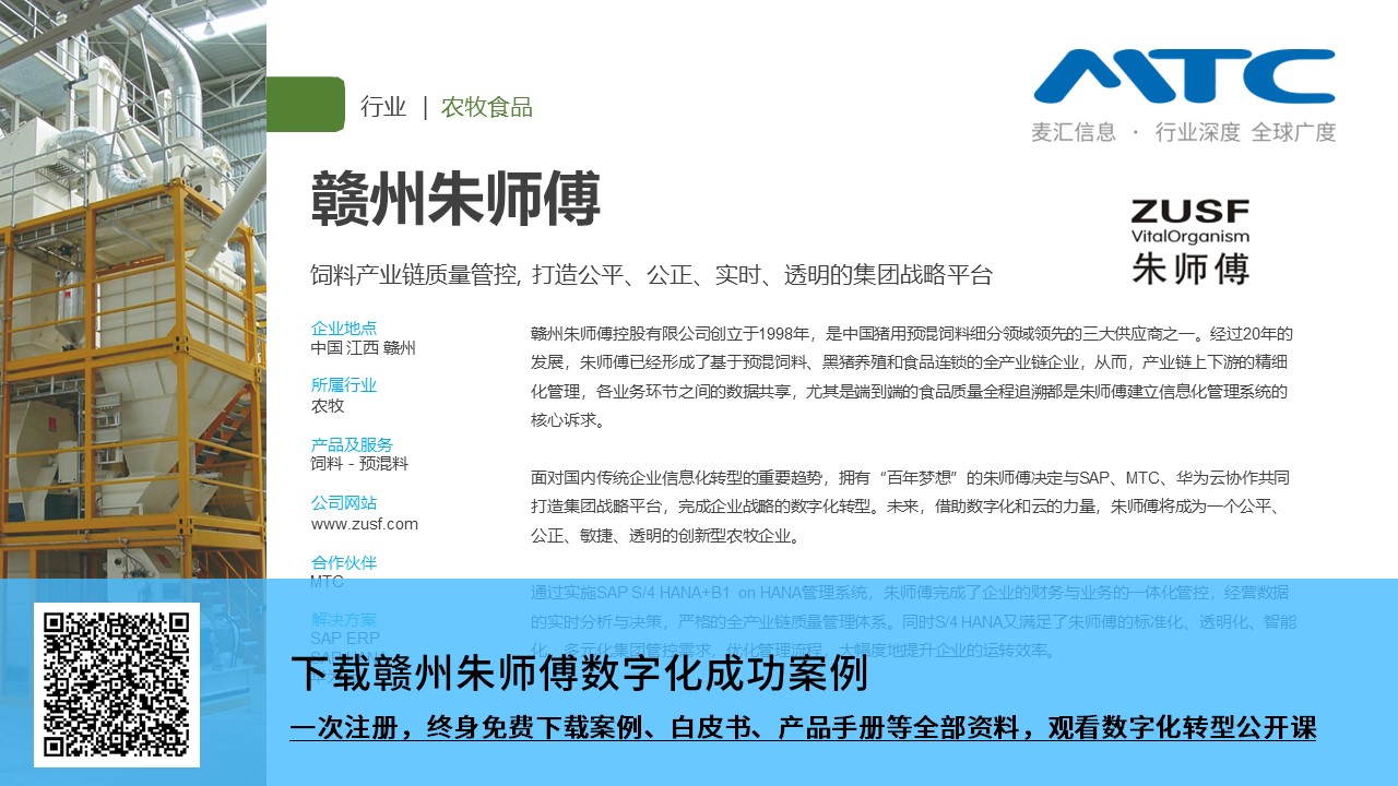 面对国内传统企业信息化转型的重要趋势,拥有“百年梦想”的朱师傅决定与SAP、MTC、华为云协作共同打造集团战略平台,完成企业战略的数字化转型。未来,借助数字化和云的力量,朱师傅将成为一个公平、公正、敏捷、透明的创新型农牧企业。