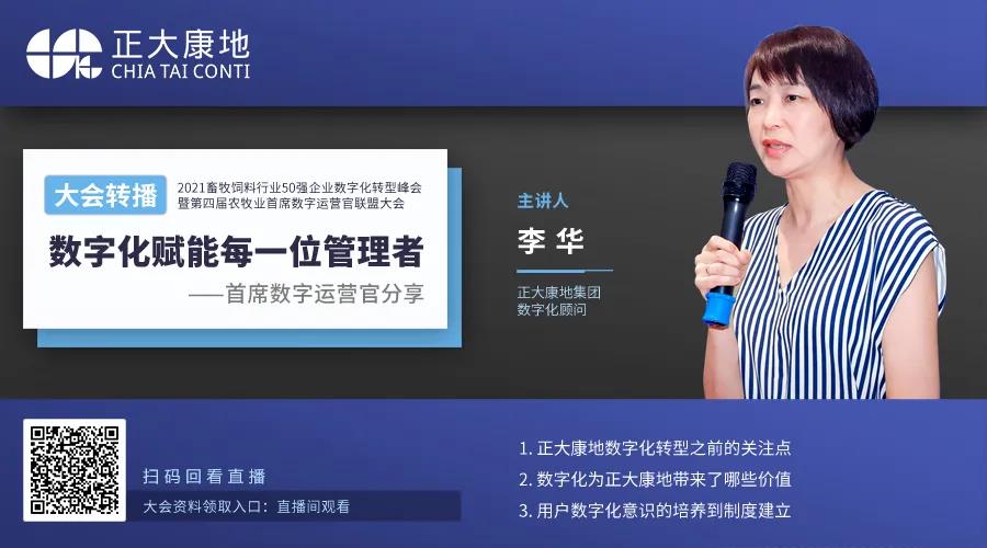 2021年5月,正大康地集团数字化顾问李华老师受邀参加第四届农牧数字化创新峰会。在”数字创新管理夜话“中,李华老师与数字化领袖们一同分享了正大康地数字化落地的实战经验。