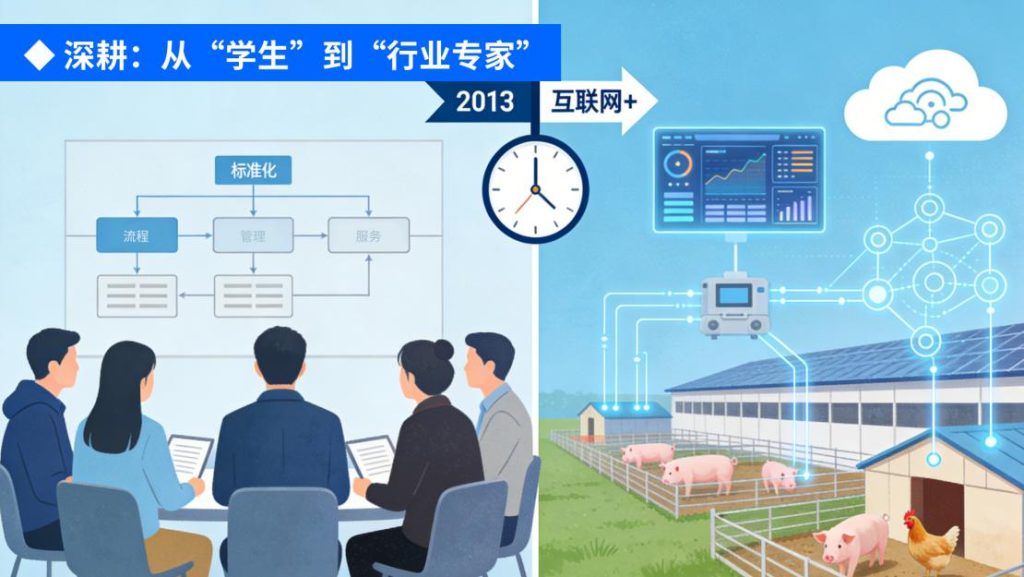 最初的几年,MTC的团队更像“学生”,跟在外资食品和农牧企业身后学习行业Know-How,把标准化、流程化的管理思路融入进自己的服务体系。随着MTC服务的体系化发展,行业机遇也悄然来临。 2013年,农业互联网+风潮兴起,农牧龙头纷纷展开角逐。此时, MTC 构建了智慧猪场与智慧鸡场,聚焦于畜牧养殖数字化平台,启动了云计算加 机器学习技术的应用实践。