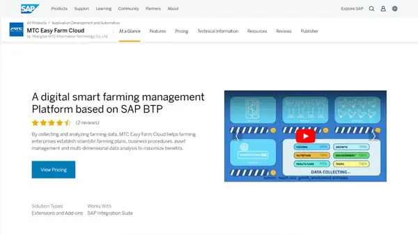 2021年,MTC智慧农场上架SAP Store,获得SAP全球专家认证。成为大中华区首个上架 SAP Store 的行业云产品。