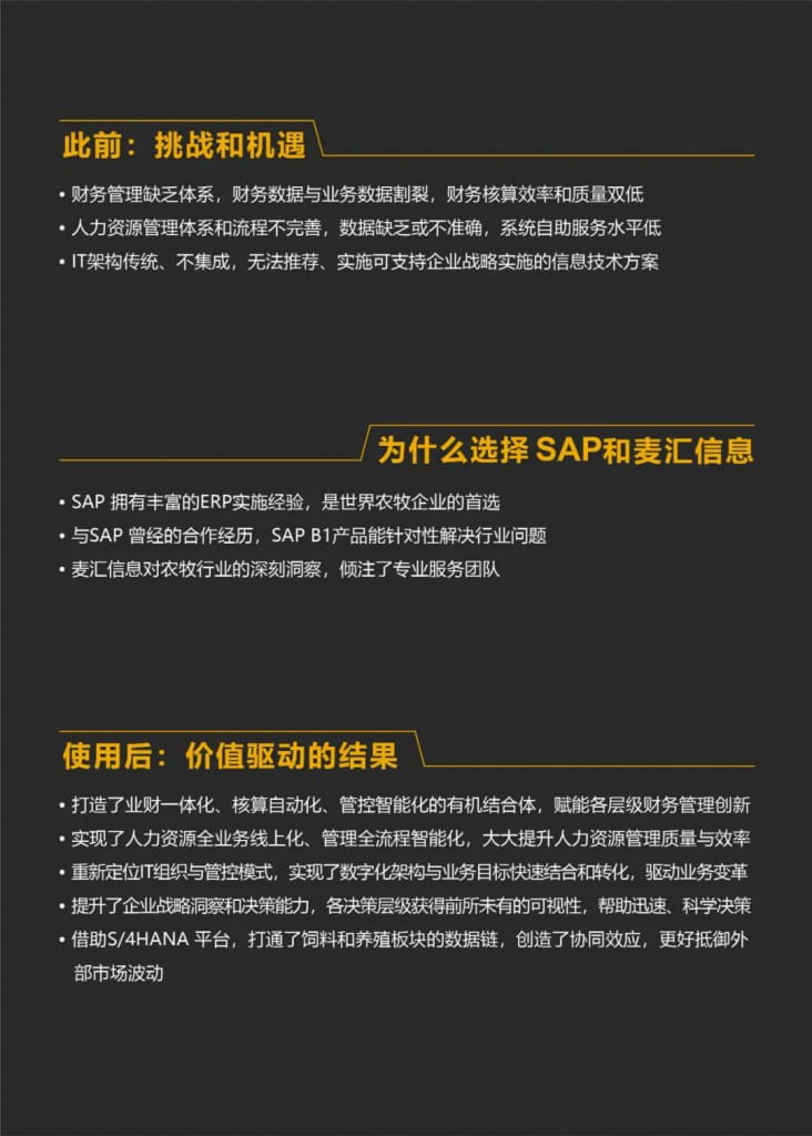 SAP:其实刚才提到了上市,我们知道农牧企业的数据、合规挑战比较大。跟工业化产品相比,农牧业的数据获取、统计分析确实要复杂得多。在这方面,IT 是如何发力的?