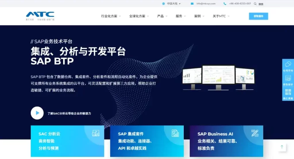 MTC新官网覆盖企业从初创到上市以及全球化布局的整个成长周期,为不同阶段提供适合的SAP ERP方案、ERP以外的技术和数字化产品,以及MTC自主产权产品。