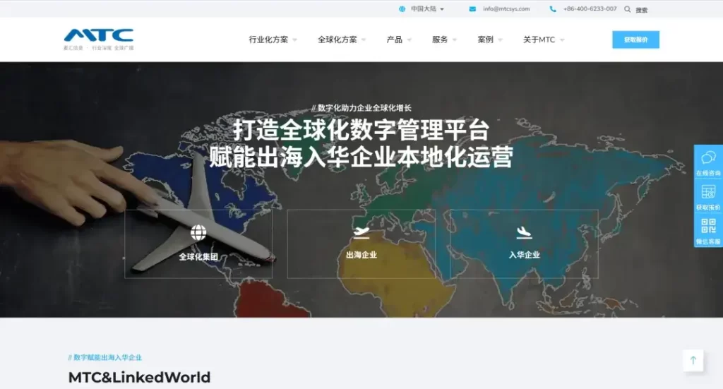 从跨国集团双层ERP部署到区域合规支持,MTC为出海企业提供端到端的全球化数字化解决方案,帮助您快速找到海外业务拓展所需的各种资源和支持服务。